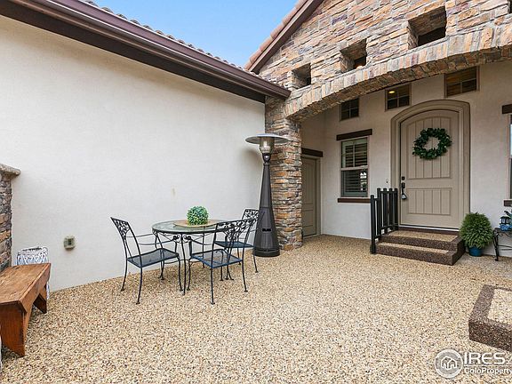 Delight in this Spanish inspired oasis nestled right here in Fort Collins. The welcoming courtyard sets the stage for an inviting first impression. Take in the attention to detail in the gate, stone work, & pebbled patio. Upon entering you will be captivated by the high-end details this home has to offer. Some of which include warm wood floors, outstanding gas fireplace w/ remote, plantation shutters & stained glass windows. Note the stunning, flowing floor plan & soaring ceilings too. The spacious kitchen offers everything to bring out your inner chef. Instant hot water faucet, double ovens, gas cooktop & mammoth pantry. Retreat to the large primary bedroom and bath. Luxury features include freestanding tub, walk-in shower & more. You will appreciate the second bedroom with on suite bath & private access to the courtyard. Perfect for guests or an office. The lower level will continue to wow with massive rec room, wet bar, beverage fridge, gas fireplace, two huge bedrooms, & 3/4 bath. Outside enjoy the professionally landscaped yard, covered patio with gas line for grilling & pleasing, private backyard. Plenty of room to play. So much to love! Home is attached by private store area, off the garage. No shared walls in living space. One level living is possible here. Come make it yours!