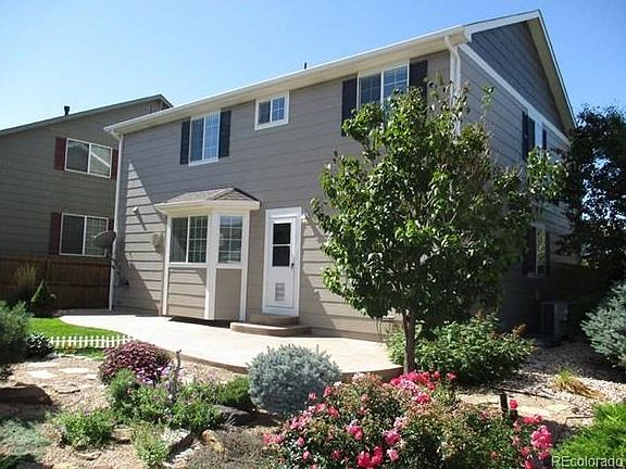 Welcome home to this corner lot in Saddle Rock Highlands. This two story is picture perfect, better than a new-build! Just move in and enjoy with the fabulous yards, all neutral paint/decor, finished basement, no need to wait months for a "new home". Vaulted two story with 3 bedrooms and a loft upstairs, with 2 full baths. Ceiling fans in all the bedrooms. Main floor has living, dining, huge kitchen island plus an eating area. With a Colorado great room overlooking the kitchen. Laundry and half bath complete the main floor. Then the finished basement with cool architectural details, niches and lighting plus a 3/4 bath. Great flex space area/ man cave/ work out/ theater room...endless possibilities.