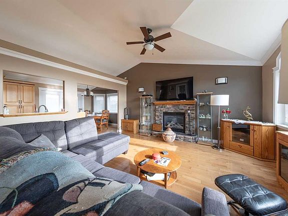 This 5-bedroom, 3-bathroom home offers 1,347 square feet of comfortable living space, with features that truly set it apart. The stamped concrete driveway adds great curb appeal right from the start. Inside, you'll find beautiful hardwood floors, a cozy gas fireplace, and central air conditioning to keep things cool all summer long. The master suite includes a relaxing jacuzzi tub, perfect for unwinding after a long day. Downstairs, the concrete basement is home to a professionally built, hand-crafted bar—ideal for entertaining. With no back neighbors, you’ll enjoy extra privacy in the backyard. Other highlights include central vac and a solid layout for families of all sizes. This home blends charm, comfort, and convenience in one great package.