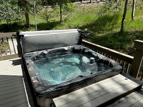 Enjoy the breathtaking explosion of Autumn color in the Rocky Mountains! Fall Special: 2 MONTH RENTAL ONLY - Sept / Oct $2,500.00 per Month, including Labor Day weekend! (Ski season unavailable) SPACIOUS 3 BED/3 BATH CONDO, 2 OWNER'S SUITES, PRIVATE HOT TUB! This fully furnished 3 BD/3BA 1950 sf condo is available Sept / Oct! The upper level boasts a full kitchen with upgraded appliances. The living area has a gas fireplace and a cozy deck just off the dining room, offering a scenic place to relax. The owner's suite has a king-sized bed, full bath, and access to a 7' x 7' private hot tub on the rear deck. The totally private lower level suite has a king-sized bed, full bath, mini kitchen with frig, microwave, and toaster oven, and large family room with electric fireplace. The guest bedroom has a queen-sized bed, access to a full common bath, and opens to the deck with a private hot tub. The unit has a large laundry w/full size washer & dryer. The attached one-car garage has tons of added storage. Unobstructed views of the National Forest and an occasional visit from our friendly neighborhood moose and her calves will make wonderful memories for your family. Cable TV, high speed internet, water, sewer, garbage, snow removal included. Renter responsible for gas and electric. No oversized vehicles. no pets, no smoking, credit check required. 1st, last & security deposit due at signing. Cable TV, high speed internet, water, sewer, garbage, snow removal included. Renter responsible for gas and electric. No oversized vehicles. no pets, no smoking, credit check required. 1st, last & security deposit due at signing.
