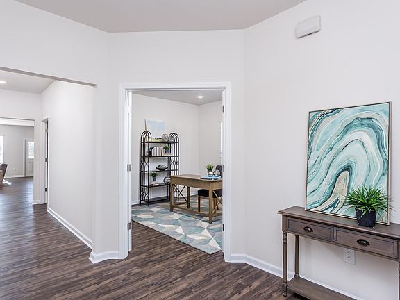 This gorgeous Eastway is on a wooded homesite overlooking one of our community's pocket parks. 3 bedrooms and 2 full bathrooms as well as a half bath for your guests. Enjoy convenient one-story living equipped with a gourmet kitchen with built-in appliance and large walk-in pantry. Enjoy the wooded views from your bright sunroom surrounded with windows. Tray ceiling and walk-in shower with tile seat in the owner's suite.