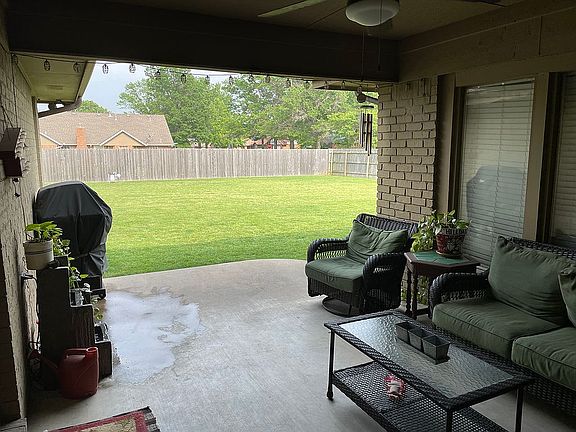 Hilldale School District in the Grandview VII neighborhood. 3 bed/3 bath. Two car garage. Large corner lot with big back yard. Two masters with en-suites and walk-in closets. Walk in storm shelter located in extra storage closet inside house. New garage door, gas range, dishwasher, carpet in bedrooms and granite kitchen counters. Several built ins: dining room hutch, book case and dressers in his/her master closets. Must provide pre-approval to tour.