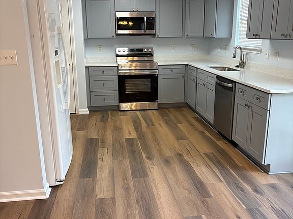 Save money while living in style! This 4BR Raleigh home features solar panels, a brand-new kitchen with quartz counters and stainless steel appliances, plus fresh flooring throughout. Don't miss your chance to tour today! Move right in and start saving! This stylish 4-bedroom, 2.5-bath Raleigh home comes fully updated with modern finishes and solar panels that slash your monthly electric bills. Step into the brand-new kitchen with sleek gray shaker cabinets, quartz-style countertops, and stainless-steel appliances, all designed to impress. Fresh luxury vinyl plank flooring flows through the main level, while new carpet upstairs creates a cozy retreat in every bedroom. The spacious, fully fenced backyard is perfect for entertaining, relaxing, or letting pets play freely your own private outdoor escape. And with quick access to shopping, dining, schools, and major highways, the location can't be beat. With its combination of energy savings, modern style, and unbeatable convenience, this home won't stay on the market long. Schedule your showing today and experience the difference of solar living!