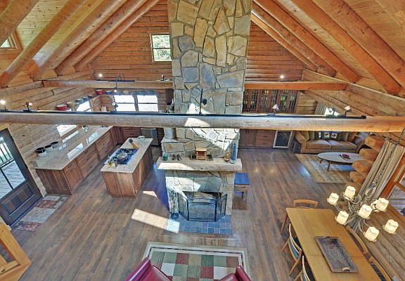 Total privacy w/pasture area & dense woods AND 3 Master Suites are yours with this Magnificent Custom built Log home (hand hewn white pine 10-12 logs),high density foam insulation, Hi-gauge metal roofing & Timberline 50 Year architectural shingles, 1 3/4 mahogany entrance doors, Velux skylights, & 30'x24' board & baton 2 car garage w/complete wood worker shop. Gourmet kitchen w/commercial grade Jenn-Air appliances, Miele ultra quiet dishwasher, wine cooler, drawer style microwave, granite counters & under-mount sinks. White oak Wellborn cabinetry w/under & inside lighting. 4 red oak hardwood flooring, & Italian tile in all baths. Trane dual fuel, 5 ton, 16 SEER high efficiency HVAC w/HEPA &