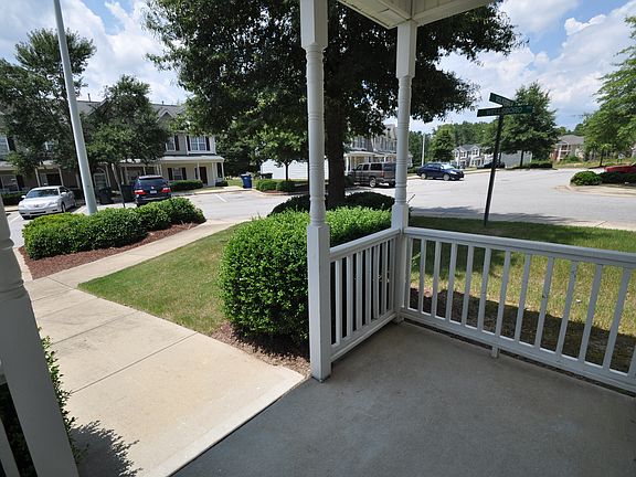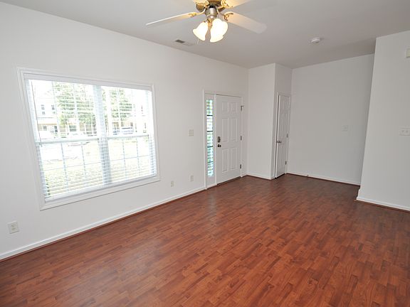 Available immediately; come visit this immaculate end unit Raleigh townhome today and you'll surely fall in love at first sight! Reserved parking greets you directly out-front, and a large, covered porch welcomes you home. Upon entering, you'll immediately appreciate this homes tall ceilings, lovely natural light and an open-concept layout that's just perfectly designed for today's more casual lifestyle. A spacious foyer with hardwoods and a coat closet leads you into an expansive family room with double picture windows and a ceiling fan. An adjacent dining area interconnects the family room with the adjacent kitchen. You'll next want to visit the kitchen that includes custom ceramic-tiled flooring, maple cabinetry topped by stone-look counters, a pantry, and a suite of sleek appliances. The kitchen also boasts a breakfast area as well as a laundry closet with a full-size washer/dryer included for resident's use. Before heading upstairs, be sure to visit the rear patio overlooking a nice yard with an adjacent storage closet. Take a quick jaunt to the second floor where you'll find all three bedrooms. The primary suite is a sight to behold and it includes a vaulted ceiling, double picture windows, plank flooring, a walk-in closet and a beautiful private bathroom with a marble-topped vanity and a tub/shower. Not to be outdone, bedroom #2 and #3 are both generously proportioned with lovely natural light, ample closet space and easy access to a full hall bathroom; also including a marble-topped vanity and a tub/shower.