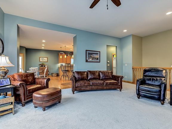 Step inside this exquisite ranch on a fabulous walk out lot in the peaceful Timberline Village neighborhood. Once inside you'll feel how warm and inviting this home is with the ten foot ceiling great room and open flow into the dining area and large kitchen. With plenty of space, you will be ready to host your family for the holidays! The main floor is complete with a large primary suite, guest room plus a bonus room to make a perfect office, parlor or nursery. Notice the new carpet and new blinds throughout this beautiful home. Large laundry room with sink doubles for storage just inside from the heated garage. Step outside onto the composite deck and overlook the large fenced in yard to watch the kiddos or pets at play. Once downstairs, you will be impressed with the entertainment space! Make some popcorn for a night in or be ready to serve up some fun at the wet bar. The whole family can join in with room for a game table as well as a gaming center. Bring your party out on the covered patio with waterproofed ceiling. Surround sound in the basement, smart home featured security system, ring system, rachio irrigation and epoxy garage floor are all added bonuses to this already stunning property!
