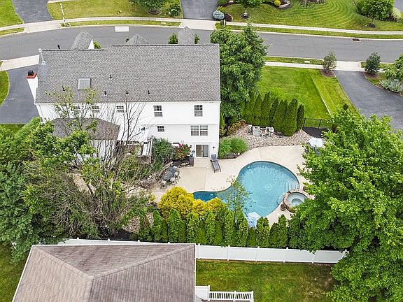 ** CINEMATIC VIDEO TOUR available under facts and features, select Interior details, then select other interior features, click Virtual Tour ** OPEN HOUSE ON 7/24 (10am - 12pm) ** This desirable home sits on about a half acre, a two car garage with a driveway and your own private resort. The foyer, featuring a dazzling 6 foot chandelier, greets you inside with elegance. The dining room is accented with marvelous crown moldings, abundance of natural light and another stunning chandelier. Leading into the living room to relax and unwind. The eat-in kitchen is well equipped with an island, generous cabinets and access to an outdoor deck to enjoy your favorite meals outdoors. Opening into the vast living room with desirable natural light, accented with a fireplace. Powder room is conveniently located by the living room. Laundry room is located adjacent to the garage entrance. Second floor presents you with three bedrooms, access to the attic, hallway bathroom and your master suite. Master suite provides you with an immense master bedroom, an organized walk-in closet and an en-suite bathroom. Your master bathroom is features a jacuzzi tub with jets, glass enclosed shower and dual sinks. The attic has tons of potential to be finished into additional living space. Invite your guests into your grand entertainment room, featuring a full surround sound system and a wet bar. A full bathroom with glass enclosed shower is conveniently located near the exit to your outdoor oasis. Entertain. Relax. Enjoy. Everything your heart desires is waiting out back, meticulously maintained. Relish the pool, hot tub, dining area and deck.