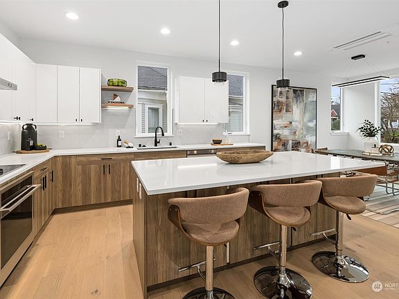 Step into luxury living with the newest addition to Wallingford's vibrant community! This exquisite home is unlike any other. The grandeur kitchen with quartz countertops, high-end appliances, walk-in pantry, and wine fridge is sure to impress. Custom lighting combined with an abundance of natural light, creates an ambiance of class and sophistication. Revel in the contemporary finishes and thoughtful design, where every detail speaks to modern elegance. Enjoy dreamy mountain views from your owner’s suite and inspiring rooftop deck. Don’t forget about the additional living space, perfect for movie night or relaxation. A rare find in the desirable neighborhood of Wallingford, with easy access to shops, restaurants, and Gas Works Park.