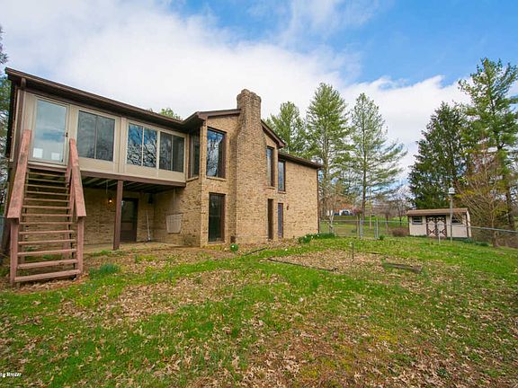 A Gorgeous Property! Come see this 2 Bedroom, 2 1/2 Bath Home with 2,734 sq. ft. of finished living space. Sitting on 1.58 acres you'll love the beautiful views and quiet setting this ranch-style home offers. Plenty of space to relax or entertain on the main floor. The Living Room has a beamed ceiling, stone fireplace, hardwood floors and lots of natural sunlight. Both the Living Room and the Formal Dining Room have access to the large Sunroom. The Eat-in Kitchen boasts more lovely views. The Master Bedroom, spacious Master En-Suite Bath, the 2nd Bedroom and Full Bath complete the main floor. The Finished Walk-out Basement has a Family Room w/ fireplace, a Half Bath, Laundry and two more rooms which could be an Office, Workout Room or 3rd Bedroom. More features include a 2 1/2 Attached Garage, Deck, Shed and two Driveways (one circular). On a quiet cul-de-sac this home is just off Hwy 393 and minutes to I-71. Sold As-Is. Schedule your showing soon!