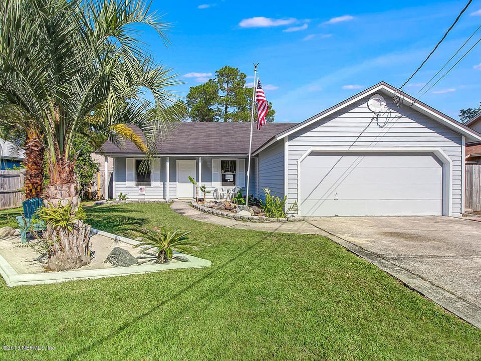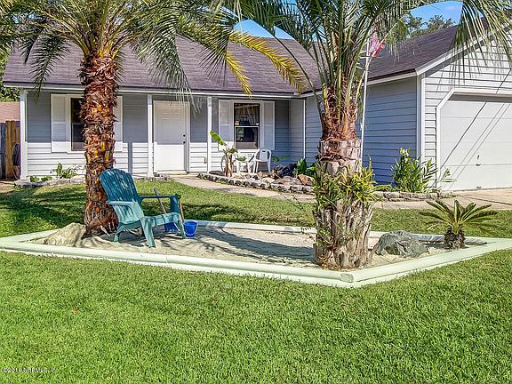Perfect home for the gardener or someone who wants fresh eggs daily. Chickens are included if buyer desires. Permit is easy to acquire from city. Seller has all information. Quiet neighborhood with no HOA/CDD restrictions and fees. This home features a large, deep lot with many fruit trees, in-ground pool, spacious shed, tiki hut, green space, and a Koi pond to greet your guests. Fresh paint inside and out, new carpet, and vinyl floors. Convenient location-near NAS JAX and NS MAYPORT. Don't wait, this one will go fast! One year home warranty included.