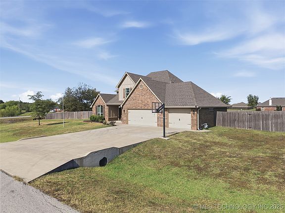 Beautiful 5-bedroom, 3 full bath home on an expansive corner lot in Skiatook's desirable Cooper Landing Subdivision - Conveniently located just off Highway 75 for easy metro access. This updated home features a 4-car garage with a convenient pass-thru overhead door leading to backyard. Open-concept first floor showcases durable vinyl plank flooring throughout, creating a seamless flow between living areas. Chef's kitchen features a walk-in pantry and a large custom mobile prep island complete with matching granite top & cabinetry below. The primary suite and two additional bedrooms are located downstairs for easy access, while the upstairs level offers two more bedrooms, a large game room, and a third full bath. The primary bedroom is massive, and features recessed lighting, a trayed ceiling as well as dual vanities, whirlpool tub and water closet in the en suite primary full bath.