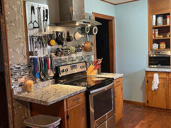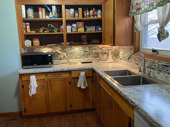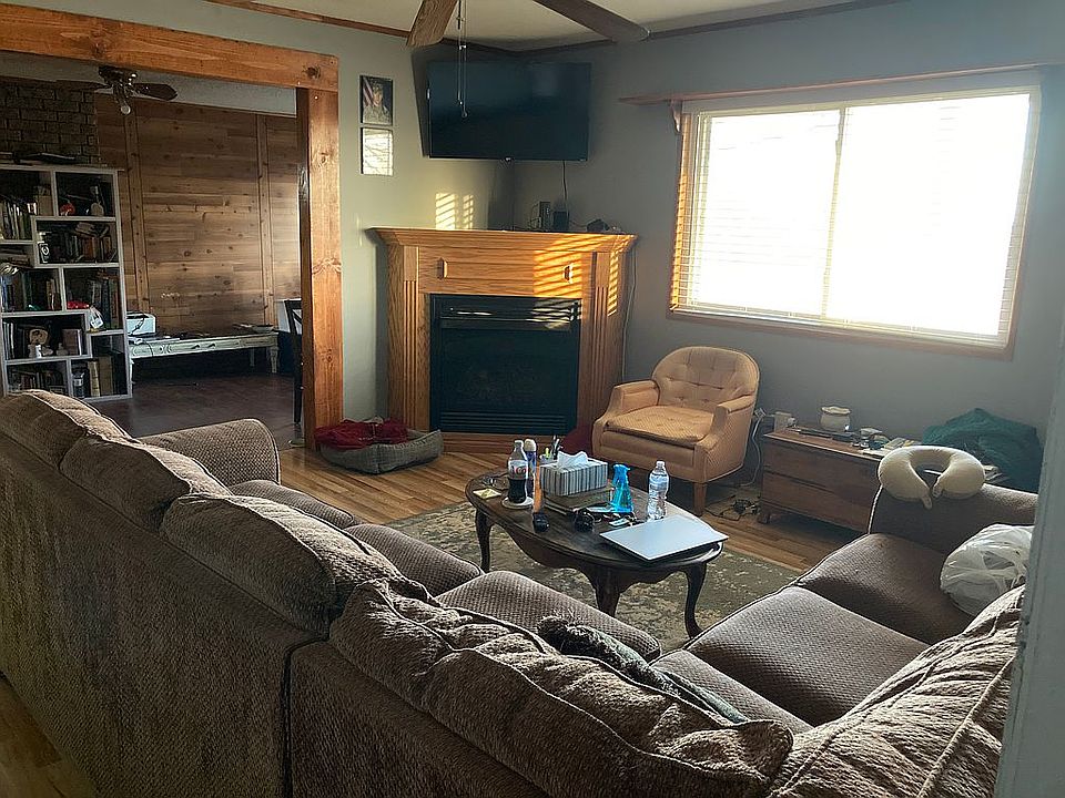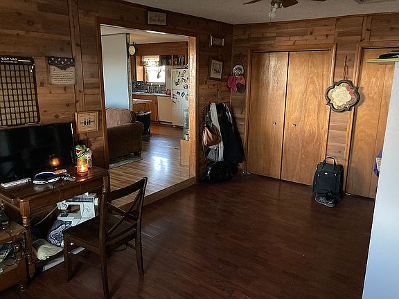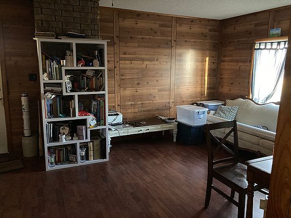 Ranch style family home. Single story with crawl space. New roof 2022. Den, Living Room, large laundry room with sink. New plumbing to be installed. Central heat and a/c with NEW propane fireplace in living room for extra heat in case of ice storm/winter weather. NEW roof, energy saving windows. Possibility to extend laundry room for 1/2 bath or enclose back porch off of kitchen/dining area sliding glass doors to enlarge dining or create breakfast nook. 6 foot privacy fence extends from sides of house to enclose backyard. Abuts field in back of house for privacy. 2 car detached garage.