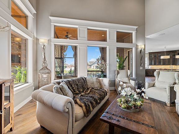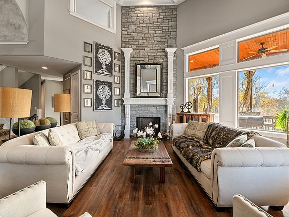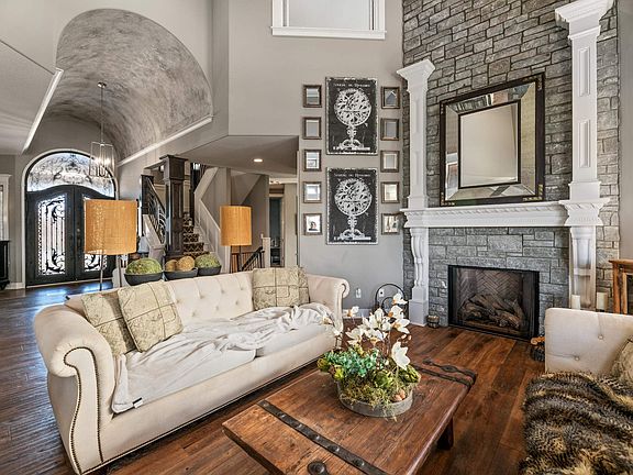 Live like Royalty in this Luxurious Estate. Enough space for everyone and this home has everything you’ll need to make memories that will last a lifetime. With custom finishes throughout, a home theater, a private pool, large covered wraparound deck with fireplace, and panoramic view of stunning waterfront! Great open floor plan with two-story great room with 16 foot ceilings that has a large corner fireplace with lots of windows overlooking the lake. Now the kitchen really is the castle itself. This is where you’ll spend some of the happiest moments around the large kitchen island with eating bar, culinary style appliances, and plenty of storage! The master suite is gorgeous with Spa like features in the master bathroom, including your own coffee bar, walk-in closet, and lots of built-ins. Main floor also offers another bedroom with attached bathroom. The upstairs loft includes a sitting area or bedroom, full bath and a rod iron baluster overlooking the water view as well. Full finished walk out basement with built-in fireplace, large, wet bar with wine racks, an office, another bedroom and bath, a workout room and incredible theater room with tiered seating. Your wet bar is conveniently located right inside from the pool area, making entertaining a breeze. Experience it for yourself and make this dream home your reality! DON'T MISS THE $10,000.00 INCENTIVE THAT YOU CAN USE FOR YOUR CLOSING COST OR BUY DOWN YOUR INTEREST RATE!!!