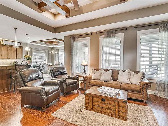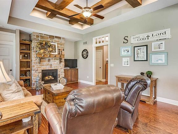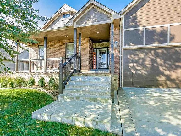 Beautiful, spacious and well maintained home located in the Maize School District! You will notice the curb appeal of this home with a perfect front porch where you can sit and enjoy the view of the lake! The current homeowner had the exterior of the home professionally painted and woodwork professionally stained to add to the attraction of the exterior! As you enter this home, you enter into a stunning foyer which walks into the grand space of the main level. The living room boasts an eye catching fireplace, built in bookshelf and gorgeous wood beams on the ceiling and large windows allowing in natural sunlight. You will appreciate the true move in ready home after the current homeowner also had the interior walls professionally painted throughout! The kitchen holds a large island with granite and custom, knotty alder cabinetry. This split bedroom home has a large, master bedroom which also shows the warm, wood beams. And don't miss the amazing, recently updated master bath with separate soaker tub and shower! You will also appreciate the new, clean carpet in each bedroom and on the stairs leading to the basement. Moving into the recently fully finished basement, the downstairs has a huge family room with wet-bar, a 4th and 5th bedroom with a full bath. While in the basement, don't miss the large, storage room, newly installed water softener and whole house humidifier. Outside is perfect for enjoying time with family or great for entertaining it offers both a covered deck and new, large patio with a built in fire-pit as well as the newly installed wrought iron fence for added appeal and use of the backyard. Updated landscaping has been completed to accommodate HOA requirements! The irrigation well and sprinkler system make this outdoor space easy to maintain. This is a home you will not want to miss!