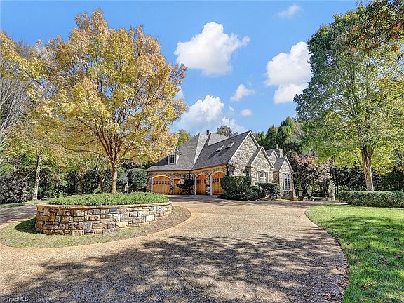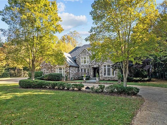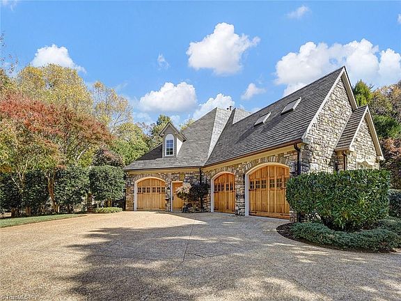 Graylyn Inspired estate property on approx. 1.75 acres with stunning indoor pool. Less than 12 mins from downtown and both hospitals! Custom built with no expense spared by McNair Construction - Pool house alone cost over $1.2 million to build in 1999! Enjoy the abundant unique structures, including pool house, greenhouse, gazebo and fountains. Formal and casual spaces have excellent flow! Main level primary suite with private sitting room, updated bath, and patio access. Finished basement with new flooring, full kitchen & bath, and optional 5th bedroom and living space. Stone exterior, slate roof, copper gutters, three car main level garage, two generators, ample storage. Relax and unwind in this private world-class oasis. Enjoy peaceful Bent Tree Farm setting.