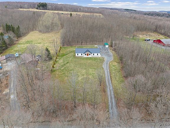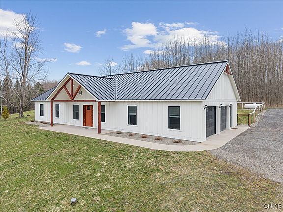 Modern Barndominium on 5.5 Acres – 10 Mins from Cazenovia & Morrisville! Designed for both style and functionality, this 3bd/2ba features Douglas fir timber beams, a standing seam metal roof, and an open-concept layout with quartz countertops in the kitchen. Enjoy year-round comfort with radiant floor heating throughout and a tankless water heater for efficiency. The attached 2-car garage offers attic storage, while an additional shed provides extra space for parking or storage. Step outside to a fenced-in backyard with a patio and sitting wall, perfect for relaxation or entertaining. Schedule your Showing today! OPEN HOUSE 4/6 - 12p-2p