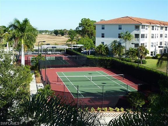 Absolutely gorgeous, 3rd floor, TURNKEY, END unit in the affordable, GATED, Banyan Trace. The Augusta is the largest at 1477 sq ft per builder. Den can be used as an office or extra dining space. This unit has many upgrades, including crown moldings, flooring, custom made furniture and cherry built-in bar w matching console. Master suite has HUGE walk in closet, en suite with his & hers sinks and very roomy walk in shower. Windows face South & East for plenty of sunlight. Basic Cable, WiFi services and water are included in your very reasonable fees. It's time to relax and enjoy this very active community. Enjoy cards, lunch or cocktails on your private screened lanai. Each condo has a storage closet just outside your door to store your toys, tools, bikes and more. One covered parking space and loads of guest parking. Relax the day away at the resort style pool, cabana, hot tubs. Get fit in the exercise room, play tennis, meet friends at community get togethers & potlucks or play a little bocce ball or tennis. Public streets in area have bike paths. Five minutes to dining, entertainment & shopping. Approximately 30 minutes to the beautiful Sanibel and Fort Myers beach.