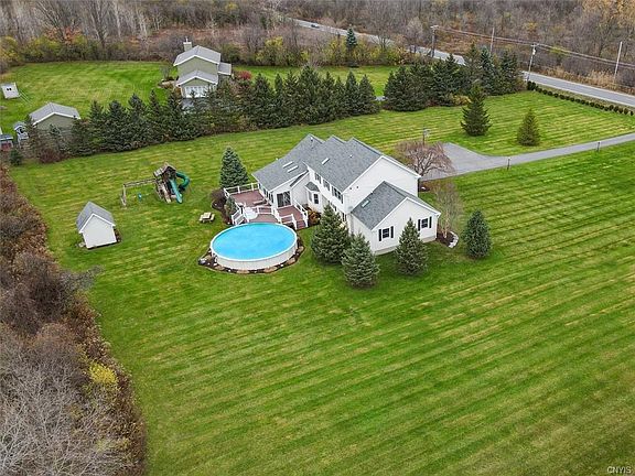 Newly renovated 3000+ sq ft Transitional just outside the village w/ 2 acres. This spacious 4 bedroom / 3.5 bath home features a wonderful first level floor plan: beginning w/ a dream white kitchen w/ quartz island, stainless appliances, custom cabinetry & hardwoods. This hub of entertaining opens to a warm family room w/ sliders to an enclosed porch & composite deck. Additionally, for more formal gathering space, a dining rm w/ hardwoods, laundry rm w/ French door access, mudroom w/ garage entry, & new half bath w/ a granite topped vanity. This level would not be complete without the 1st floor master suite featuring a cathedral ceiling, walk-in closet, & full bath w/ walk-in shower. This set-up is perfect for those who need accessibility on the main level! The 2nd floor offers yet another master suite, w/ vaulted ceiling, bath & walk-in closet, plus two more bedrooms and a hall bath. The lower level in this home has a 900 sq ft rec room, utility room & second laundry. New infrastructure includes: radiant floor heat, central A/C, tankless gas water heater, Anderson windows, white Shaker interior & exterior doors, newly installed wood trim/baseboards & paint. A must see!