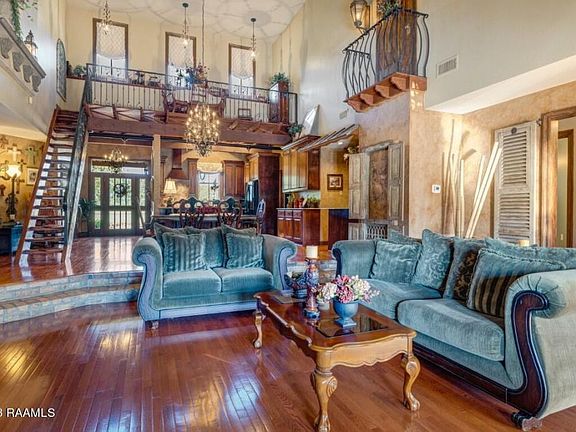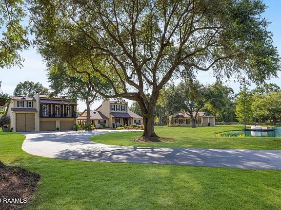 Set on over 7 1/2 acres you will find a lovely estate hosting numerous sleeping quarters including a main house 2351 square feet, an additional large 1300 square feet villa and another enclosed entertainment room which could be used as an additional studio apartment. Three separate spaces, 3 separate kitchens, and 4 full baths gives the most versatile estate to adapt for your needs. All of the living spaces are tastefully designed in a New Orleans style with no detail missed. Gorgeous chandeliers and Old Chicago brick and a new state of the art shower are located in the main house. French doors can be found on all sides of the estate for all of theliving quarters, so whether you are looking from the villa balconies, the main house living room or the separate entertainment studio area, admire the surroundings of the larger pond or the bayou from within.- Take a stroll outside onto the back porch and view the brand new expansive boat dock with your own boat slip. The property is fully bulk headed across the entire length of the yard along the bayou. Another feature not to be missed is a large enclosed storage building big enough to house more than one hobby. This storage facility has 1790 sq feet total, complete with 3 roll up doors, one of the doors facing the bayou for easier access to the water. Returning to the back porch, feast your eyes on the charming details of the New Orleans style courtyard! The gas lanterns along the wrought iron fence surrounding the courtyard are delicately made by a man from the New Orleans Parish area, the flame of each lantern is a fleur des lis! A smaller decorative goldfish pond resides in the middle of the courtyard and it is an original fountain also from the #34;Big City#34;. Meander through the courtyard and approach the two guest living areas. The villa is a fully functional smaller replica of the main house including 2 separate balconies, a full kitchen and ensuite. The studio/entertainment quarters is also located with the entrance at the courtyard and gives all guests their own privacy. The bonus entertainment studio has its own kitchenette and ensuite with french doors and a promising view of the bayou, and along the outside of the porch resides a hot tub. This estate would be an excellent venue for two airbnbs just with the guest quarters but the possibilities are endless!! This home features so much more, such as an additional smaller workshop, a 3 compartment garage that accommodates your 40 foot motorhome and a fully stocked larger pond in the front of the e