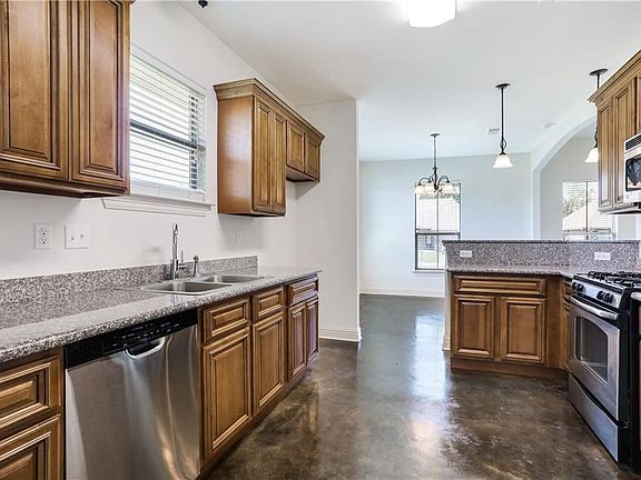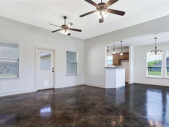 Move in ready home available now!!! Features 3 beds/2bath with stained/scored concrete flooring throughout, granite countertops, beautiful wood entry door. Primary bath boasts dual vanities, dual closets, soaker tub and separate shower. Stainless appliances with gas range. Double lot with fenced backyard! Must see!!!
