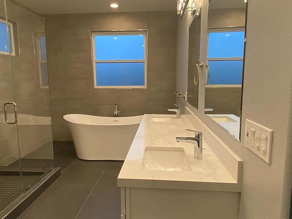 New Mediterranean style, 6 bedrooms and 6.5 bath custom home in Fremont Sundale area! Main structural includes main house and attached ADU! ADU has 2b/2b, laundry and kitchen. Main house has two master suites downstairs and two upstarts! Master bedroom has Walk-in closet, contemporary style tub, frameless glass shower enclosure as well as rain shower, contemporary floor and wall tile design! Gourmet kitchen features huge quartz countertop island, full back splash, microwave dent, kitchen aid pro-style 6 head stove with pot filler, double ovens! Beautiful maple wood semi-customized cabinet provides a lot of storage! walk-in pantry, as well as Hansgrohe brand plumbing fixtures! Spacious open area with 9 feet ceiling, crown molding, recess lights and surveillance system! Two separate laundry room each floor provide more convenient features! Walking distance to Fremont central park, Elizabeth lake; Close to Fremont Hub, whole food shop, Bart station, Fremont highway 880!