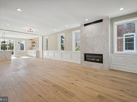 Enchanting re-build of an End Unit Petworth Wardman Rowhouse. Period Architecture blends perfectly with modern design elements, and an open concept living space. This four bedroom three and one-half bath residence has left nothing to the imagination. The front elevation is a classic rebuilt front porch Wardman. The first floor has massive windows on two sides, rustic oak engineered flooring, and a modern kitchen with all the features a gourmet chef would appreciate. Stainless GE Cafe appliances with a six-burner stainless cooktop with requisite pot filler, double wall oven and ample storage in stacked ceiling height cabinetry, seating waterfall quartz stone island, and a built-in credenza with wall cabinetry, hanging shelves and bespoke oak wall coverings. The front room features a new custom insert vented gas fireplace and hearth. A splash of color at the top and lower interior spaces and custom architectural textured walls, shadow boxes and chair rail make the spaces unique. The ample and exquisite use of space is exemplified as you ascend to the primary suite. You are welcomed to the space with oversized windows, 12 ft Cathedral ceilings, a built-in walk-in closet and an ensuite spa bathroom. Double vanity sinks, frameless glass shower, pedestal soaking tub, a skylight and elegant and timeless, custom oversized ceramic and Carrera Marble surround. Equally apportioned second and third bedrooms have views of rear and side yards, and are serviced by an equally furnished hall bath with soaking tub. A full-size stackable washer and dryer finish the space. The lower level is a guest or nanny suite with rear and front entrances, gourmet wet bar, recreation space, a full bath, and oversized ceramic tile throughout and a true rear kitchen with table space and full light window to the air space and rear yard. The kitchen space and dining room lead to an oversized deck, manicured rear sod, and two-car off street parking pad with commercial roll up garage door. Connection for an electric vehicle in place. The rear concrete areaway makes the lower level feel above grade. All systems are new, plumbing, 200 AMP electrical service, and dual HVAC systems for true two zoned heating and cooling, one furnace one heat pump. All windows low E double Thermal Pane, and double hung. New cool white TPO roofs, Trex decking, custom metal railings and new privacy fence round out the features. If you are looking for timeless elegance in a suburban urban setting, with easy bus access to all of the Metropolitan area, this is the home to explore.