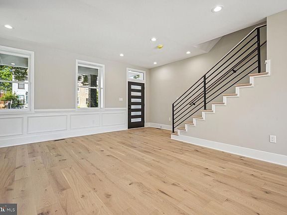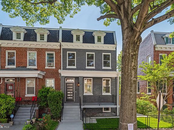 Enchanting re-build of an End Unit Petworth Wardman Rowhouse. Period Architecture blends perfectly with modern design elements, and an open concept living space. This four bedroom three and one-half bath residence has left nothing to the imagination. The front elevation is a classic rebuilt front porch Wardman. The first floor has massive windows on two sides, rustic oak engineered flooring, and a modern kitchen with all the features a gourmet chef would appreciate. Stainless GE Cafe appliances with a six-burner stainless cooktop with requisite pot filler, double wall oven and ample storage in stacked ceiling height cabinetry, seating waterfall quartz stone island, and a built-in credenza with wall cabinetry, hanging shelves and bespoke oak wall coverings. The front room features a new custom insert vented gas fireplace and hearth. A splash of color at the top and lower interior spaces and custom architectural textured walls, shadow boxes and chair rail make the spaces unique.