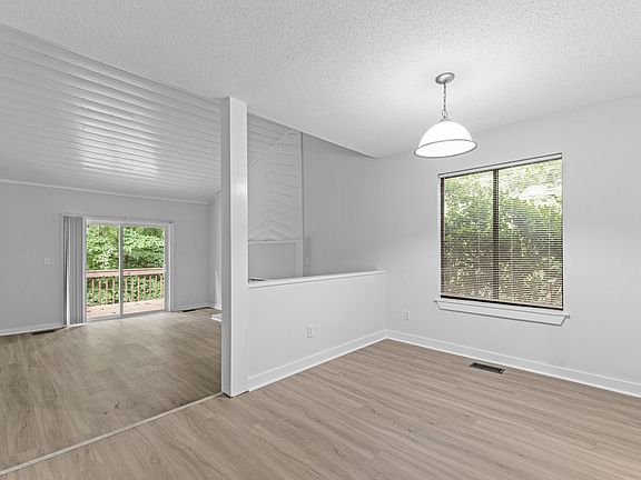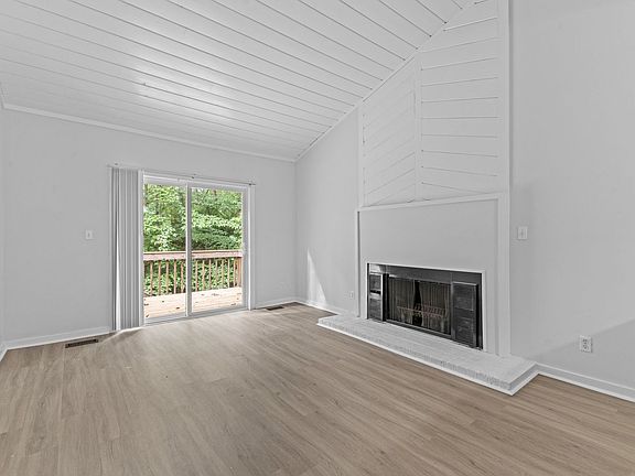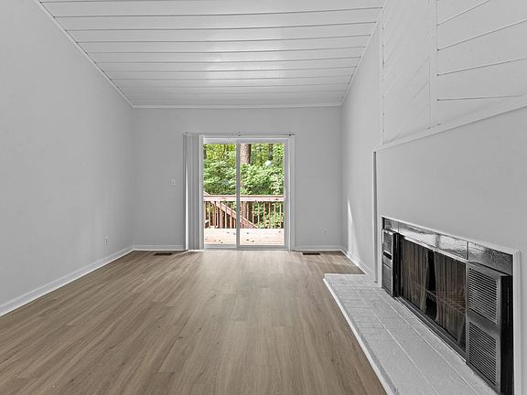 4012 Arckelton Drive in Raleigh has just been updated top to bottom, and features new LVP flooring throughout, new interior paint, vaulted ceilings, gas fireplace, open dining area, two spacious bedrooms and bathrooms, and a large, private deck and fenced-in backyard!