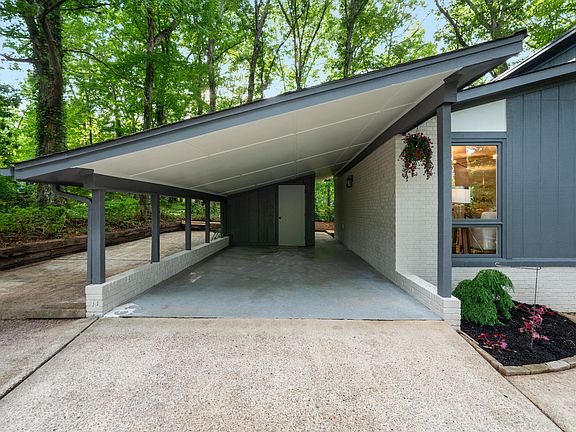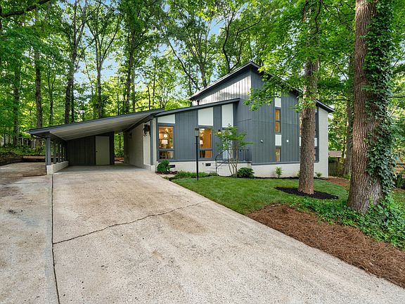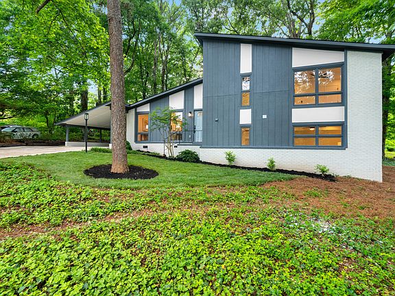 Stunning 4BR/3.5BA mid-century modern fully remodeled inside and out! Home boasts an open concept in a premium location. Features designer finishes, carport with storage room, custom bar, and bold green brick fireplace. Brand new roof, HVAC, and water heater. Spa-like baths, custom closet systems, and polished concrete floors. Deck overlooks private wooded lot with raised garden beds. A perfect blend of timeless architecture and modern comfort!