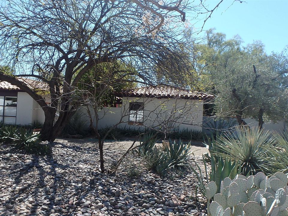 This beautiful San Clemente home exudes all the warmth and charm you expect in this historic central neighborhood. Mission tile roof and welcoming front courtyard entrance bring into another world of peace and quiet. Screened in back porch will become your favorite hangout to enjoy the beautifully landscaped backyard. Kitchen has been tastefully updated with a splendid mix of Corian and butcher block countertops. Three bedrooms and two baths in the main house plus a separate guest house with its own bathroom and kitchen. You will need to move quickly if you want to be a part of one the friendliest and most desirable neighborhoods in Tucson.
