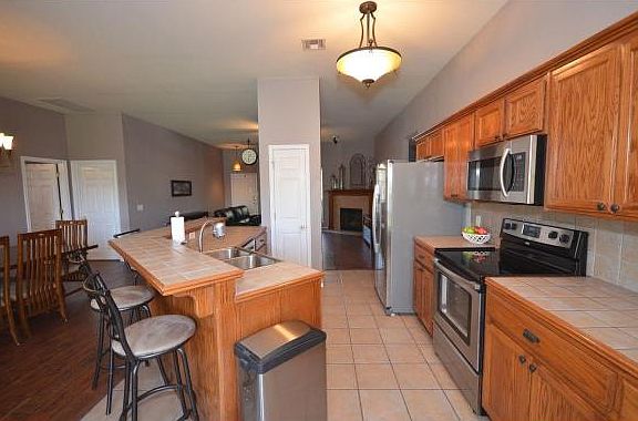 Beautiful 3 bedroom, 2 bath, 2 car garage home with open and bright floor plan. This home boasts and open floor plan with lots of natural light and 3 areas for dining. It has a large dining that is versatile and could be a formal, a breakfast nook, and the large breakfast bar. The kitchen is very large with lots of cabinets and counter space to work around and includes stainless appliances. The roomy master has an enormous closet and a master bath with separate bath and shower. HAS STORM SHELTER