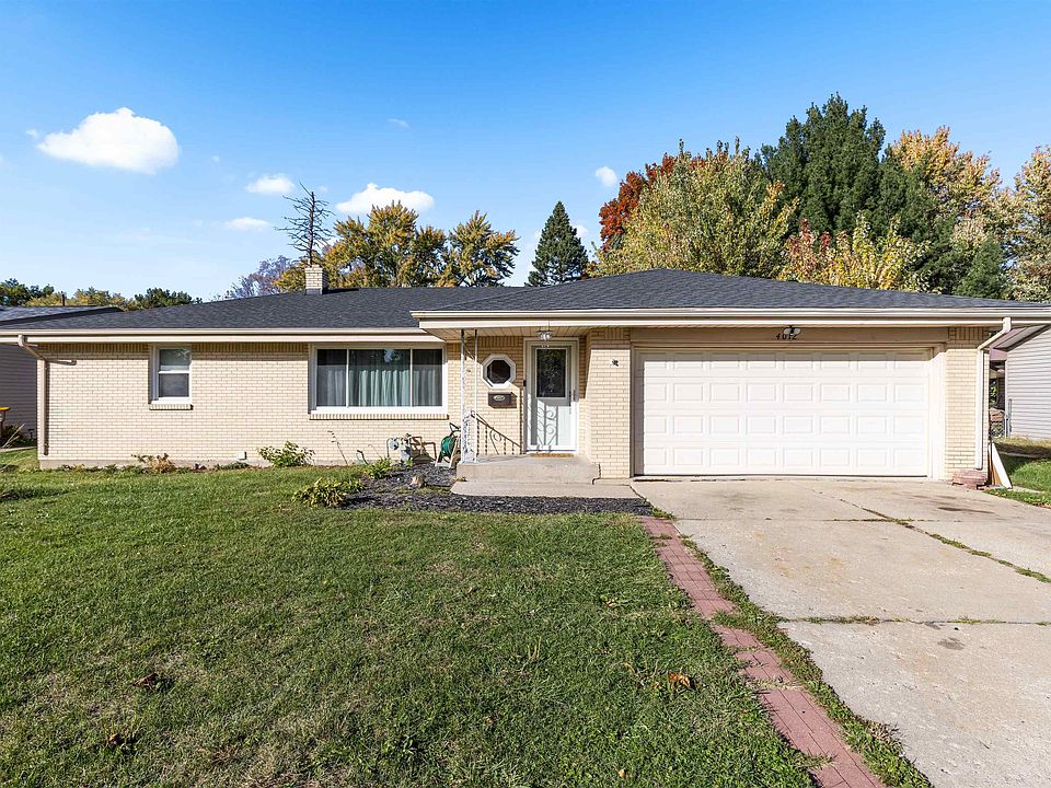 Charming ranch home with a brick front featuring 3 bedrooms, 2 full bathrooms, and an attached 2-car garage. Light and bright living room with a large picture window and hardwood flooring. Spacious kitchen with ample counter space and a separate dining room, also with hardwood floors. All bedrooms feature hardwood flooring. Remodeled main floor bathroom. The basement offers a rec room with a bar, a bonus room, a movie area with projector and screen, and a bathroom. Roof and A/C are approximately 3 years old, vinyl windows throughout. Enjoy the 3-season porch off the kitchen and the fenced backyard. Great central location!