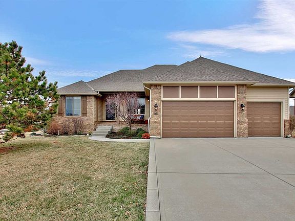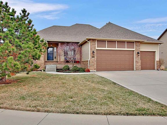 This is the 5 bedroom ranch home with a main floor office you have been waiting for! Updated throughout, Maize South schools, open plan, wrought iron fenced yard on .37 acre and shows like a MODEL! CLEAN, white, bright and inviting as you enter into your open plan living room with vaulted ceilings, rich dark wood floors, beam, focal fireplace with stone and brick from floor to ceiling, picturesque windows overlooking your backyard, neutral colors, new fan, new blind insert for deck door and newer paint for all main floor walls and trim. Living is open to dining, kitchen and main floor office. Kitchen features new quartz counters, new back splash, new refrigerator, new pendant lights, new sink and new faucet. Stainless kitchen with new range in 2018 and all appliances remain. Kitchen also has pantry, wood floors and new quartz eating bar. Dining is just off kitchen and has new designer light fixture, wood floors and expansive views of your East facing backyard. Your beautiful sunrises await. Master bedroom is over sized with room for king sized furniture, soaring trey ceiling and the ceiling fan is new. Master bath has double vanities, new quartz counters, new tile back splash, new sinks, new faucets, new WiFi power outlet, new vanity lighting, tile floors, jetted tub, separate shower and obscure bathroom window. Master walk in closet has seasonal rods, lots of built in rods and shelving, great storage and has access to main floor laundry with tile floor, sink, folding table, extra storage and makes for a spacious drop zone off garage. Main floor office has wood floors, french doors and is the perfect location for the home office, play room or craft room with proximity to the kitchen and living room you never feel far from the flow of family. Mid level walk out brings abundant light into the home with an impressive window over the stairwell and window blind controlled with remote. Main floor is a split bedroom plan and bedrooms have new paint and new lights. Hall bath has new quartz counters, new light, new sink and new faucet, tile floors and what a stunning update. Basement is fully finished with walk up granite wet bar, new bar back splash and tile floors. The statement piece of the family room is the gas fireplace with newly painted mantel and new tile surround. Basement features you will appreciate are the new can lights, new blinds, new paint, view out windows and abundant space that make for a perfect space for hosting friends and family. Basement also has two additional over sized bedrooms with newer paint, new blinds and walk in closets. Basement bath is granite, tile floors and new back splash. The new continues-hot water heater is new in 2019, water softener new in 2017, new garage door opener (WiFi controlled), New front and storm doors, new wi fi light switch and light in entry. Manicured lawn is on sprinklers with irrigation well, wrought iron fence, surrounded by trees and play set remains. Covered deck off living room and concrete patio below will be favorites for entertaining and relaxing. Watercress is conveniently located to shopping, Eisenhower Airport, hospitals, schools and highways. Watercress has a community pool, clubhouse, playground, lakes and natural common areas for your enjoyment. You will love your Watercress home!