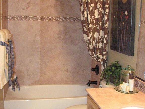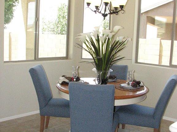 Beautifully decorated and furnished MODEL HOME. 2 bedroom plus a Den/Study/Hobby room. Fully landscaped on a premium view lot. Upgrades include: Hickory cabinets throughout, flooring and carpet, Decorator colors, bathroom vanities and surrounds, security system, ceiling speakers, Ceiling fans, beautiful fireplace, jetted tub in the master bedroom. Sold AS IS.