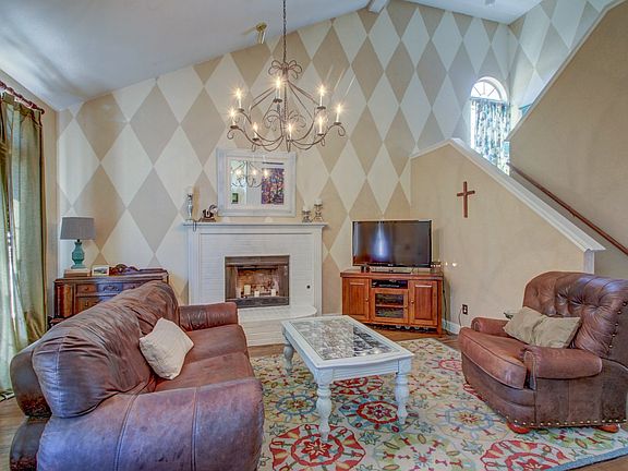Great home in Eagle Cliff! Inviting living area with cozy fireplace! Wood laminate floors throughout living, dining, and master. Master suite features large walk-in closet and master bath with separate tub and shower plus double vanities. Open kitchen design has breakfast bar, pantry, and new paint in 2015. Upstairs you will enjoy two, spacious bedrooms that share a full bath. One bedroom has a complete wall of bookcases plus window seat. Outside the backyard offers a great space for entertaining, wood storage building, and vegetable garden! The open field behind this home gives you a wonderful view of the Oklahoma sunsets. Perfect spot to enjoying s'mores around the beautiful brick fireplace! All this plus 2 car garage and storm shelter! You do not want to miss out on this home!