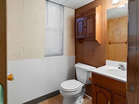 Huge fenced yardUnfinished basement workshopOwn half bathWorkshop with cabinets