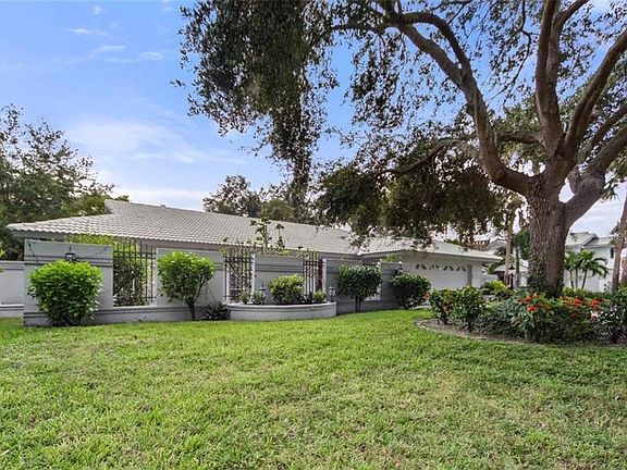 Finally your dream home ,you have been waiting for is here. Inside home totally upgraded 4 years ago, new tile/tile wood floor, new carpet flooring in all bedrooms, new painted interior and exterior, new pool deck resurfaced, inside pool retiled, new lanai screened, new flat roof, seller spent over $70,000 in upgrade, now it is yours to enjoy. This Country Club home is a stand out. This architecture with classic tile roof & solid construction, but also because it has bragging rights to the most beautiful fairway view if IMG championship course. Sweeping panorama of the 12th green & surrounded by a hammock of majestic trees, your eyes can also delight in seeing a curving lake visited by variety of birds. Bougainvillea framed courtyard invites you into a gracious foyer with crown molding & arches leading to multiple wings of the home. Focal point of the interior design is the clearstory windows that follow the lines of the volume celling in the Great room& bring those wonderful views right in. Stone fireplace adds character to the room. The open kitchen is perfectly to enjoy the natural backdrop while being pretty in it's own right. Granite counters, wood cabinets & a smart center island with newer appliances. The separate living room has a custom molding cabinet for a large flat screen. The Caribbean sun room with plantation shutters is adorable for casual dining & opens to the covered lanai for pool side entertaining. Terrific spilt bedroom design- each of three private suites have their own full bath. 3rd bedroom used as home office. Great neighborhood location. No CDD fees. A home to be enjoyed , easy bike ride on golf path to IMG campus. All major appliances convey, the furniture can be purchase via separate contract.
