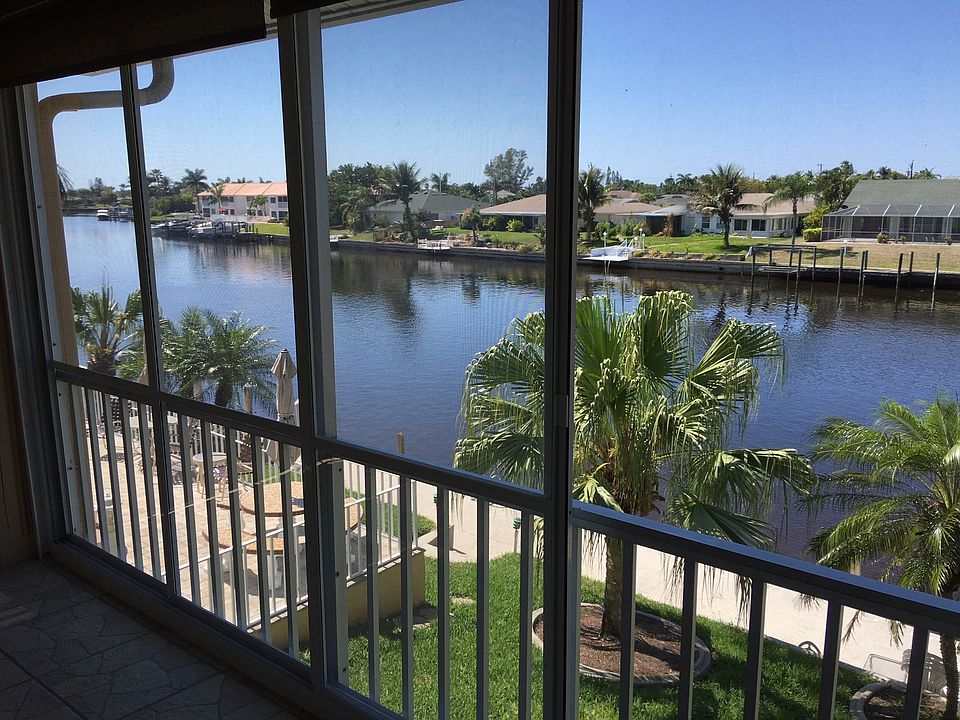 - Experience this very well maintained Gulf Access Condo boasting over 1380 Sq. ft. of living space under air and, on the much sought after 200 Ft. wide Rubicon Canal only 75 yards from direct river access via the Plato Canal and one bridge.Second floor end unit with 2 bedrooms and formal dining. Impact windows and door. Detached covered parking with extra storage unit. Gorgeous Pool area overlooking the wide canal with lounging area and community grill. Excellent location near restaurants, walk downtown, park and churches. Access the enclosed tiled Lanai via sliders from living room and master bedroom. Master bedroom has walk-in closet. (RLNE4263203)