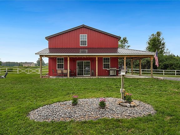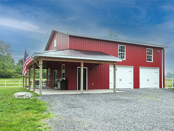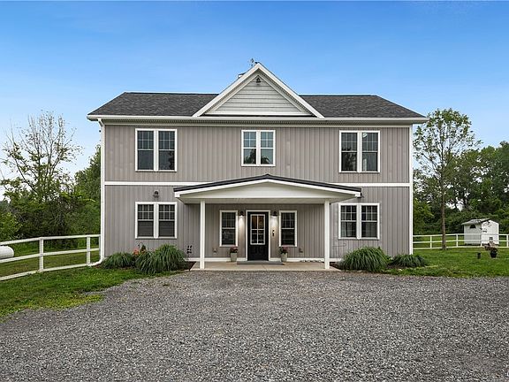 Need lots of bedrooms plus office space in Skaneateles School District? How about a private setting on over 10 acres just outside Village of Skaneateles? Or a new barn to store all your toys? This house built in 2016 has all that and more ! Kitchen has large windows, granite counter tops, stainless steel appliances, large island and pantry room with more cabinets and shelving. Office and full bath on 1st floor. Upstairs has 5 bedrooms, full bath, large hall closet and laundry. 30'x40' pole barn has 2 car garage bays on one side and insulated, heated gym with slider than opens onto covered porch on other side with a door that connects them. This room would make a great home office. The upstairs is completely open, ready for whatever you want to make it. Fenced in back yard. Play set and chicken coop can stay or be removed by seller. Natural gas at road. Electricity from street pole runs underground to house and barn. Seller installing central air, if not in by closing credit will be given at closing.