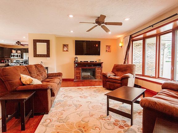Cannon Ball into this 3 bedroom, 2.5 bath country ranch! 4012 Sunset Lane comes complete with an updated kitchen with stainless steel appliances, updated bathrooms & flooring. Open concept living room, dining room & kitchen. A half finished basement gives you desirable additional square footage. Rooms are set for you to mount your flat screens. As good as the interior is, the exterior is better. Situated on over half an acre complete with irrigation system, beautiful deck, pool, and stocked koi pond. Detached garage with roll up door for storage of lawn & pool equipment with half bath. If you hurry now the you'll be in the pool by Summer! Welcome to 4012 Sunset Lane. Schedule your showing today!