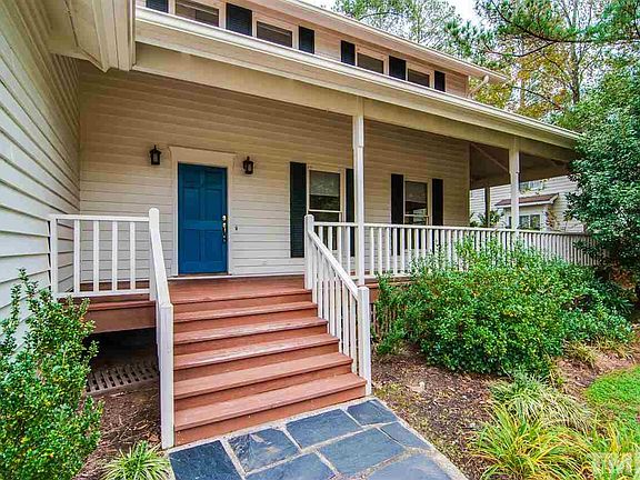 Home in beautiful Marydell Estates with covered, wrap around porch, hardwood floors throughout, large family room with vaulted ceiling, separate living room and dining room, french doors, fireplace, and 3rd floor bonus room. Four bedrooms including master on 2nd floor. Kitchen with solid surface counters and two pantries. Private back yard with huge 28' deck. Convenient to shopping, Duke, RTP, I40 and Chapel Hill.