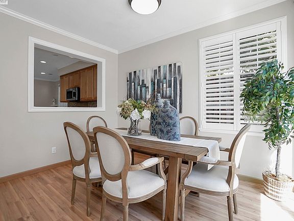 This stunning home, facing west, is located in a serene court near Tassajara Creek. The 9' high ceilings and abundant natural light create a remarkable and spacious environment, perfect for hosting guests or enjoying daily life. The backyard is impeccably maintained and perfect for entertaining. The kitchen is fully equipped for your culinary needs a gas cook top, oven, etc. and built-in seating area, The primary bedroom boasts a spacious layout, with a primary bath featuring a stall shower, heated marble floors, a soaking tub, and custom-designed closets. Moreover, the backyard features several fruit trees while the front yard is adorned with vibrant rose bushes. Bonus: Potential side yard access. This home is conveniently located near Tassajara/580 Fwy/Hwy 84, with Top rated schools, BART, Emerald Glen Park, shops, and restaurants.