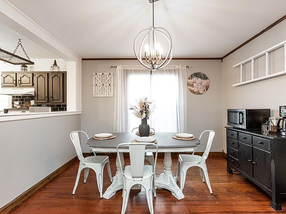 This Dollhouse sets amid mature trees and is surrounded by farm fields. First impressions are everything and this home presents itself well. From curb appeal to interior updates this beauty gets an A+. You can't help but feel a sense of calm when exploring the exterior of this home. If you like peace and quiet you will get it here. The sounds and sights of nature are abundant in this sweet little slice of heaven you can call yours. Let the lighted walkway welcome you home! Upon entering you will notice stunning hardwood floors, they are rich in color and set the tone for the whole space. The wood burning fireplace in the family room is the centerpiece to of the room. This sweet inviting comfortable area is open to the kitchen/dining space. Master bedroom, and laundry are on main level for convenience. There is an awesome area that is currently being used as an entertainment space with a bar, but use for whatever fits your needs. The upper level hosts the 2 B/R's and bath.