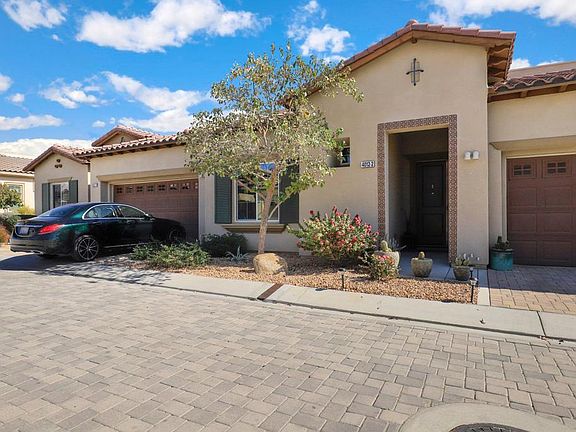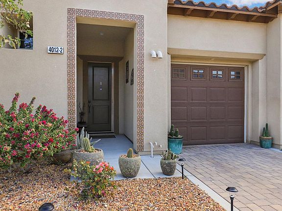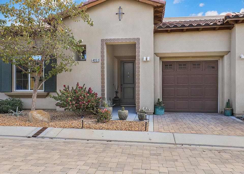 Luxurious condo in the resort style 55 or better community of Villa Portofino. Gorgeous interior features high ceilings with recessed lighting, ceramic tile flooring, open spacious floorplan. A gourmet kitchen lends the ideal space for creating meals and entertaining with a central island with bar seating and pendant lighting, granite counters, richly hued cabinetry, stainless steel appliances and subway tile backsplash. There's a private courtyard patio perfect for lounging and al fresco dining. The primary suite allows plenty of space for a king sized bed and features a walk in closet and beautiful en suite bathroom with dual sink vanity and stand up shower. There's access to the back patio from both the living room and primary suite with views of the pristine landscaping. Take a refreshing dip in the community's pool and relax in the spa while looking out at the surrounding mountains. There's an attached one car garage with a split A/C unit. Located minutes from shopping and dining options. Come see all this home has to offer!