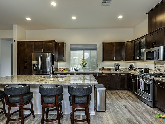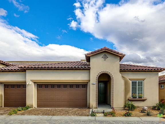 Welcome home to Villa Portofino, the Desert's premier 55 or better community located in the heart of Palm Desert. This Ravello floor plan was constructed in 2016 and has a premier location in the community. You will love the privacy and serenity from your large patio with a location away from the street. Offering two bedrooms with great separation for privacy, a den that can easily be converted to a third bedroom, private courtyard, great room, covered patio, oversized master with separate tub and upgraded shower in bathroom and you are going to love the 40k in porcelain tile plank flooring. Community has a 32,000 square foot clubhouse with movie theater, bistro, fine dining, conference room, concierge, pool, billiards room, library, bridge room and more. Enjoy complimentary yoga, aquatic, tai-chi, Zumba, movies and more.