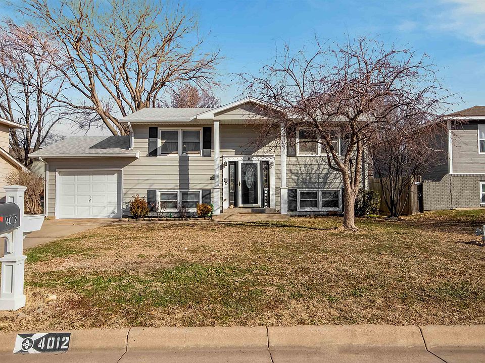 Stunning bi-level Wichita home with a portico! 4012 W 11st St N is a 3 bed, 2 bath, 1 car garage single family residence with a fully fenced private backyard. Everything about this home is classy and stylish, and it shows! Look at that well-kept front yard, symmetrical frontage, and the inviting portico. The foyer is a looker with its beautiful staircase, stained glass front door, decorative drop light, and wonderful balusters. The living room is bright with large windows and opens to the airy dining room with its sliding glass doors leading to the elevated rear deck. The efficient parallel kitchen has white cabinetry, white tile backsplash, spacious white counters, and complete kitchen appliances. Two large bedrooms share a full bath with a tub at the main level. The lower level has a spacious great room with lounge, an informal dining space complete with a wet bar, a third bedroom and another full bath. Discreetly sectioned to the side is a storage area and laundry room. The backyard has a privacy fence and may be accessed from the elevated rear deck and a service door from the lower level. A concrete patio is perfect for entertaining; just bring in your furniture and even build a fire pit as a DIY project. The home is move-in ready and recently remodeled. Mature trees dot the property and add to the family-friendly ambiance of the home. Live right next to shops in W Zoo Blvd and N West St; schools are just within walking distance. Call today to schedule a showing and don't miss out!