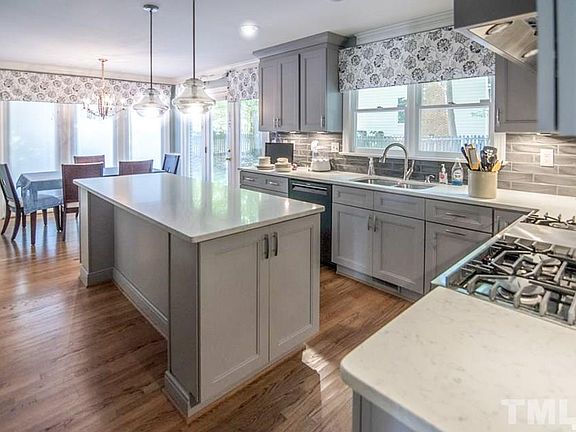 ALL BRICK RANCH IN NORTH RALEIGH! Kitchen has been remodeled and updated with Professional Gas Stove with Vent Range Hood, Pot Filler. Gorgeous Kitchen with all updated stainless steel appliances, solid marble countertops, customized tile backsplash, Deep stainless sink, recessed lights with smooth ceilings and custom pendant lights. KITCHEN IS AMAZING! Separate dining room with pass through directly to chef's kitchen. Open Family Room with cathedral ceilings and cozy fireplace. Hardscaped back patio.