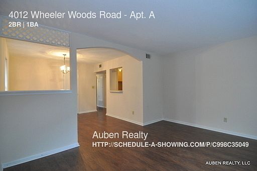 SCHEDULE A SHOWING ONLINE AT: showmojo.com/lh/c998c35049 This two bedroom/one bath ground-level apartment is conveniently located off Wheeler Road in West Augusta, directly behind Bruster's Ice Cream & Nathan's Famous Hot Dogs. The apartment has off-street parking, a private front patio, a spacious living room, a formal dining room, and a full kitchen with all appliances included. The home has new paint and flooring throughout and is available for immediate move-in. Well-behaved, non-aggressive pets will be permitted with a $250 non-refundable fee per pet. Appliances: Refrigerator, Dishwasher, Electric Stove, Electric Water Heater. Schools: Lake Forest Hills Elementary, Langford Middle School, Richmond Academy. * Amenities . 2 Bedrooms . 1 bathroom . 982 square feet . First Floor Apartment . Convenient West Augusta Location . Off-Street Parking . New paint & carpet . washer/dryer connections . central heat & air . total electric . Walk-in Closet . Pets Allowed . Georgia Power service area