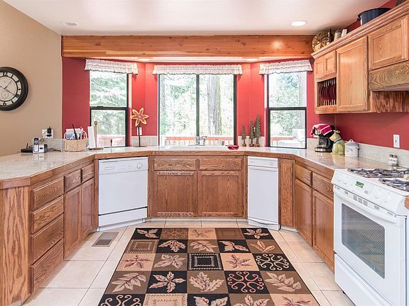Enjoy spectacular mountain views from this well priced home in Shaver Lake. Warmly decorated, the 3 bedroom plus loft, 2.5 bathroom home features 2307 square feet, an open living level with vaulted ceilings, and abundant windows to bring the outside in. Amenities and finishes include tile floors, freestanding wood-stove, plush carpet, tiled granite countertops in the spacious kitchen, north-facing deck off the dining room, large master bedroom suite, soaking tub, private 3rd bedroom and half bath, and 2 car garage. Situated on just under five acres in the lower portion of the Dogwood subdivision, this property is peaceful and quiet yet only minutes from the town of Shaver Lake.