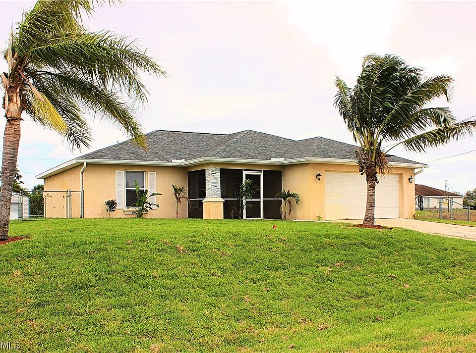 Welcome to your dream home in Lehigh Acres! Close to all the main roads yet tucked away on a quiet street, This stunning single family home boasts 3 bedrooms plus den, 2 bathrooms, and a 2 car garage, providing ample space for you and your family. The Den/office is perfect for those who work from home, or a cozy space for relaxation. The open plan concept creates a seamless flow between the living room, dining area, and kitchen, making it perfect for entertaining guests. The stainless steel appliances in the kitchen are brand new, adding a touch of modernity to the space. The wood like laminate flooring throughout the home adds warmth and character, and are easy to maintain. The two walk-in closets provide ample storage space, while the new roof and new irrigation system ensure that your home is well-maintained. There is a large storage shed for all your garden tools. The new sod in the yard adds to the home's curb appeal, making it the envy of the neighborhood. This home is perfect for those who value comfort, style, and functionality. Don't miss out on the opportunity to make this house your home!